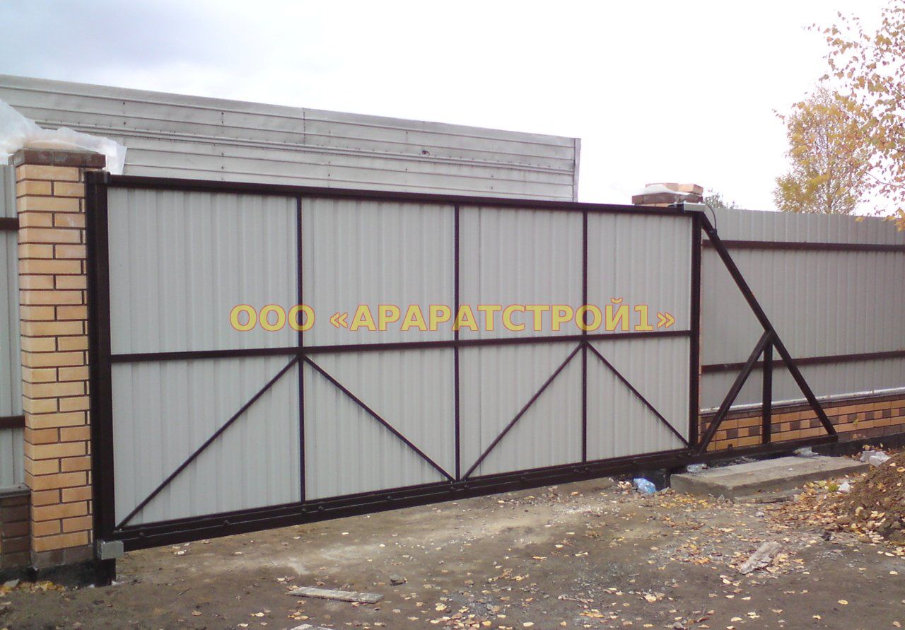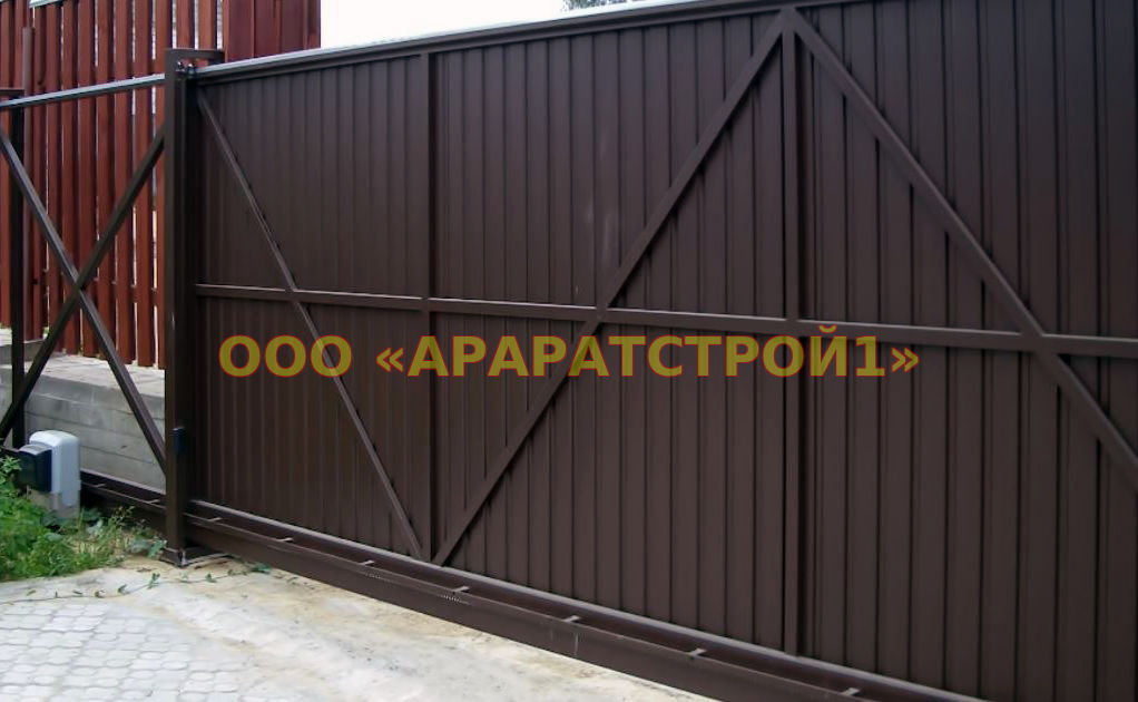 Установка откатных ворот, цена указана под ключ . Фундамент ворот - винтовые сваи (ф-108 мм 2шт+швеллер) глубиной 2.5м в землю. Каркас ворот приваривается из профильной металлической трубы 60/30мм, 80/40мм. Обрешётка ворот приваривается из профильной трубы 20/20мм , 40/20мм. Металлическая конструкция ворот покрыта грунтовкой и краской стандартных цветов: RAL 8017-коричневый, RAL 6005-зелёный мох, RAL 9004-черный. А так же обшивка профлистом стандартных цветов. Автоматика на выбор: ASL 500, NICE RD 400.В комплекте 2 пульта. | |||||